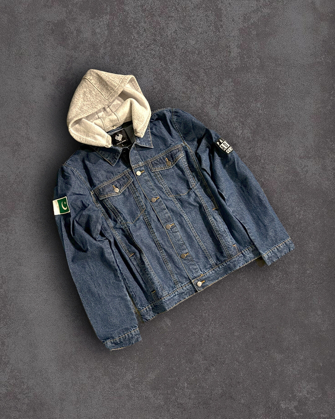 Uni-Sex Jet Black Denim Jacket with Detachable Charcoal Hood Features:-✔️Pure denim(100% cotton)✔️Comes with removable Hood✔️freshly...