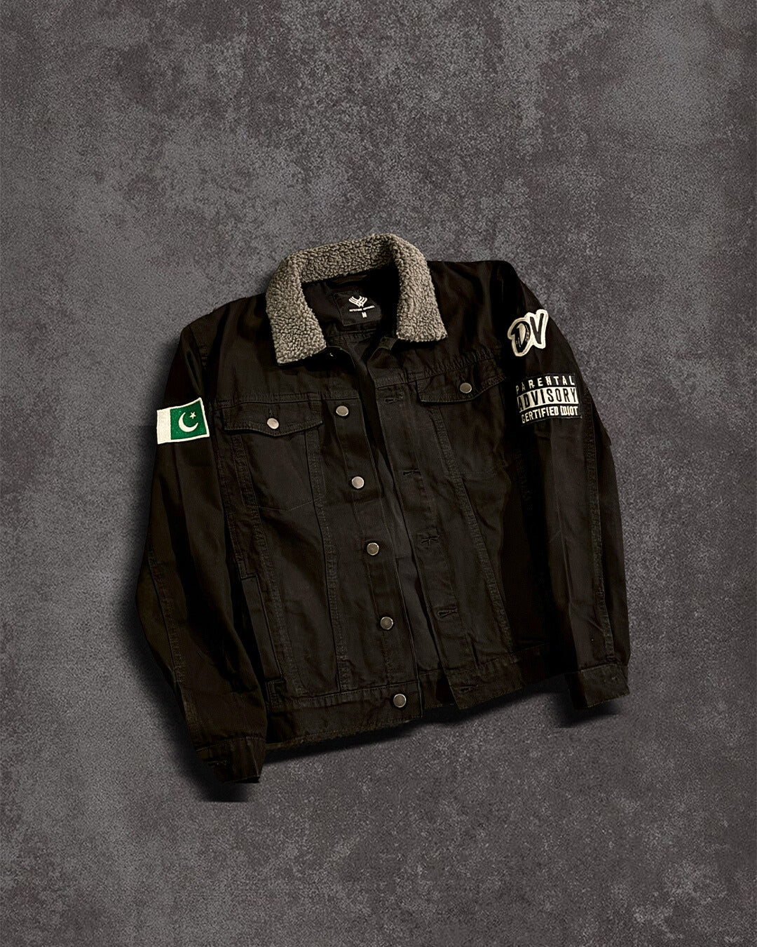Jet Black Denim Jacket with Charcoal Collar Fur (Uni-Sex) Ft. Dualvisor