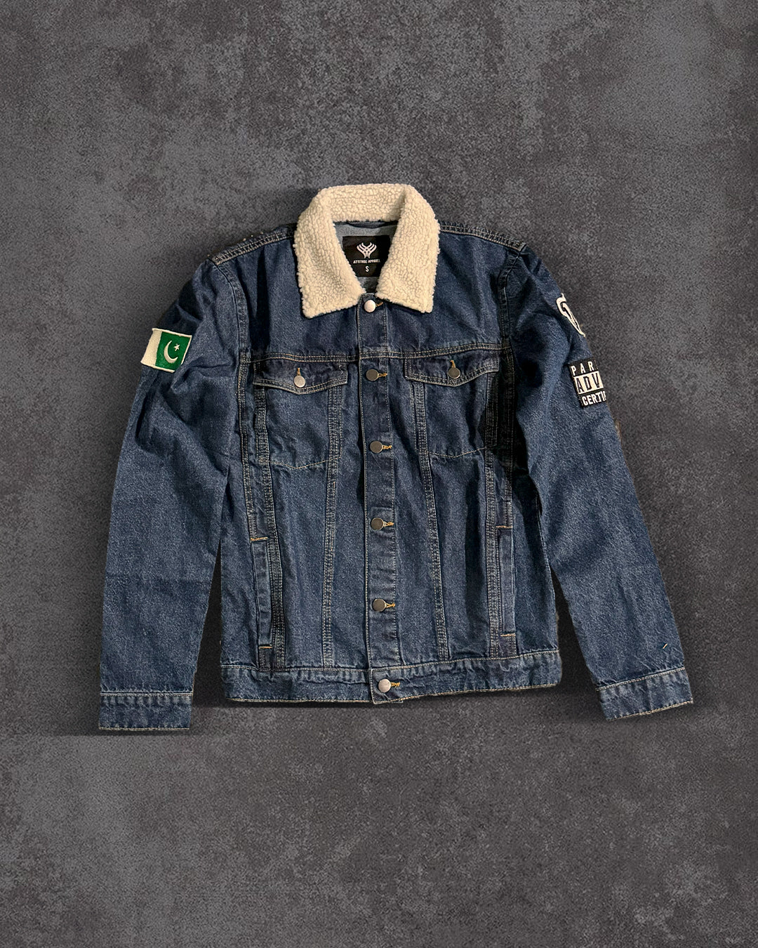 Dark Blue Denim Jacket with White Collar Fur (Uni-Sex) Ft. Dualvisor