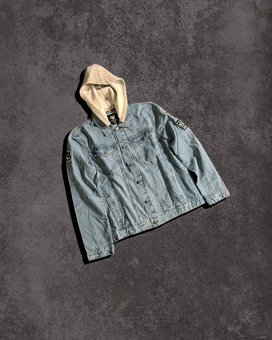 Uni-Sex Light Blue Denim Jacket with Detachable Heather Grey Hood Features:-✔️Pure denim(100% cotton)✔️Comes with removable...