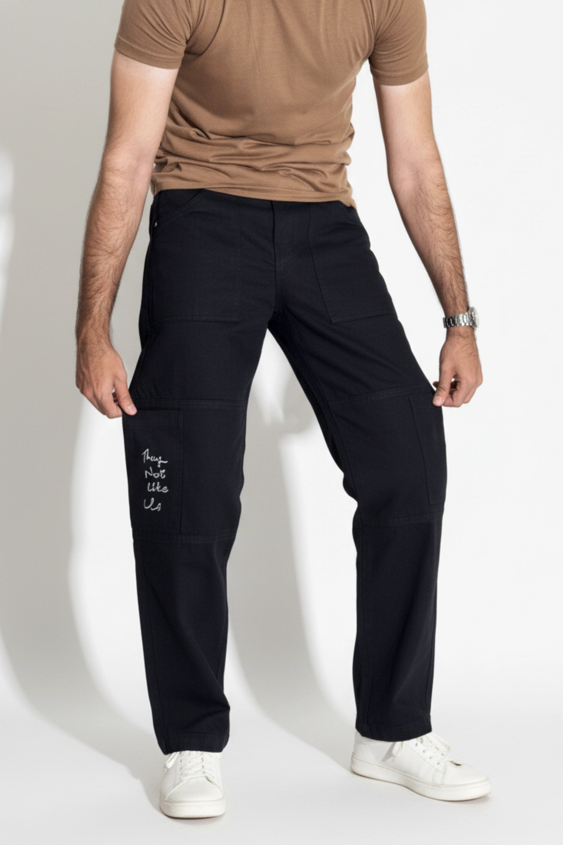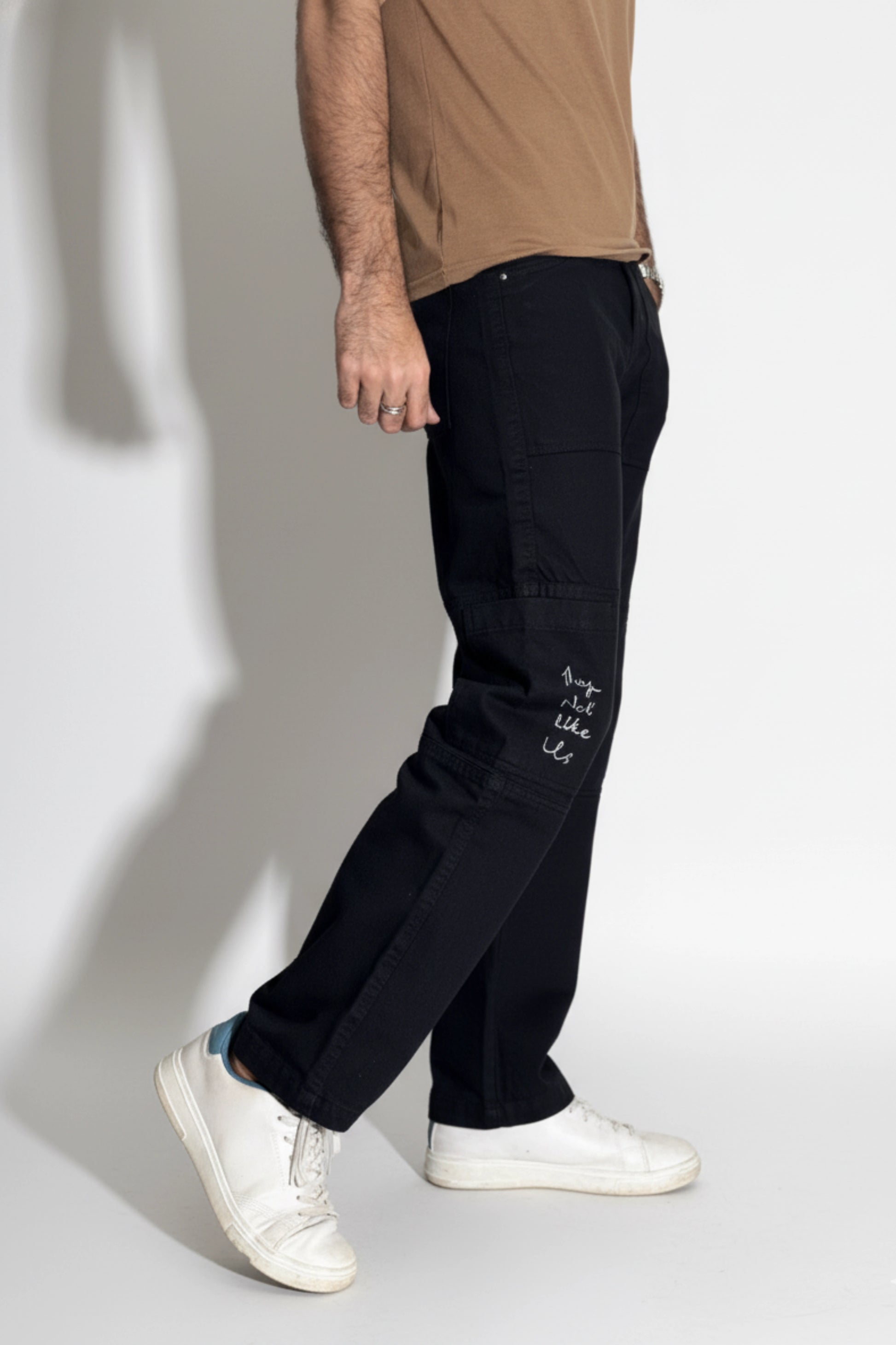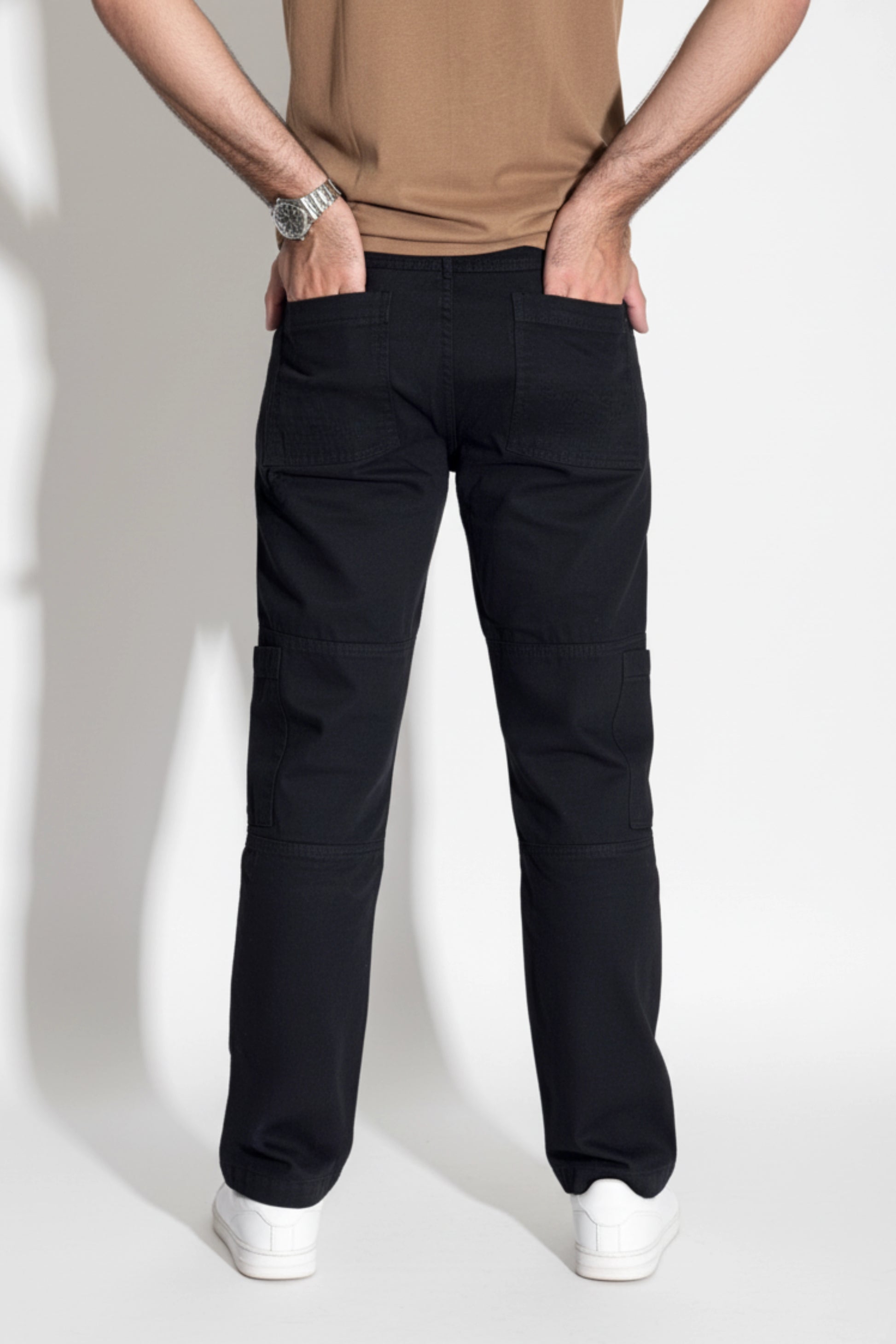 Commando Jeans - Night Ops in Black colour. Made in 100% Cotton Rigid fabric with 2 front patch pockets and Joey Pockets on the leg for a perfect Straight-Fit Fall and Classy look. Meant to uplift your Daily wear Fashion with an inspired touch and added Utility.